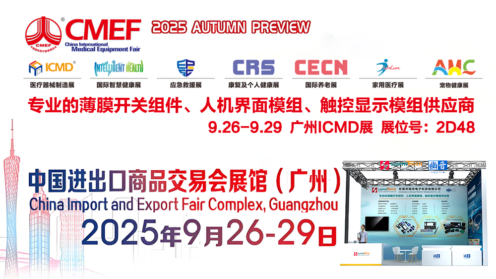 2025年9月26-29日雨菲电子参加2025第92届CMEF医疗器械展诚请您莅临指导治谈 中国进出口商品交易会展馆(广州) 雨菲电子展位号:2D48 #人机界面模组 #薄膜开关 #触摸显示模组