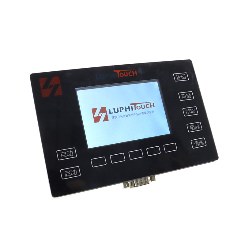 触控显示模组&彩色膜片开关,电容触摸感应人机面模组通常包含电容摸薄膜开关,电容触控感应 PCBA 功能板,机壳,电容触控功能程序软件,有时还带有背光模块,导光板,电容触摸滑动模块,手感反馈模块,压力感应模块等等。此外触摸感应开关与LCD 结合在一起成为触摸显示模组。所有的部件集成在一起成为一个综合的电容触摸感应人机界面显示模组。雨菲电子的触摸显示人机界面模组可支持 SPI,UART,RS232,I2C和USB 接口的通信协议。